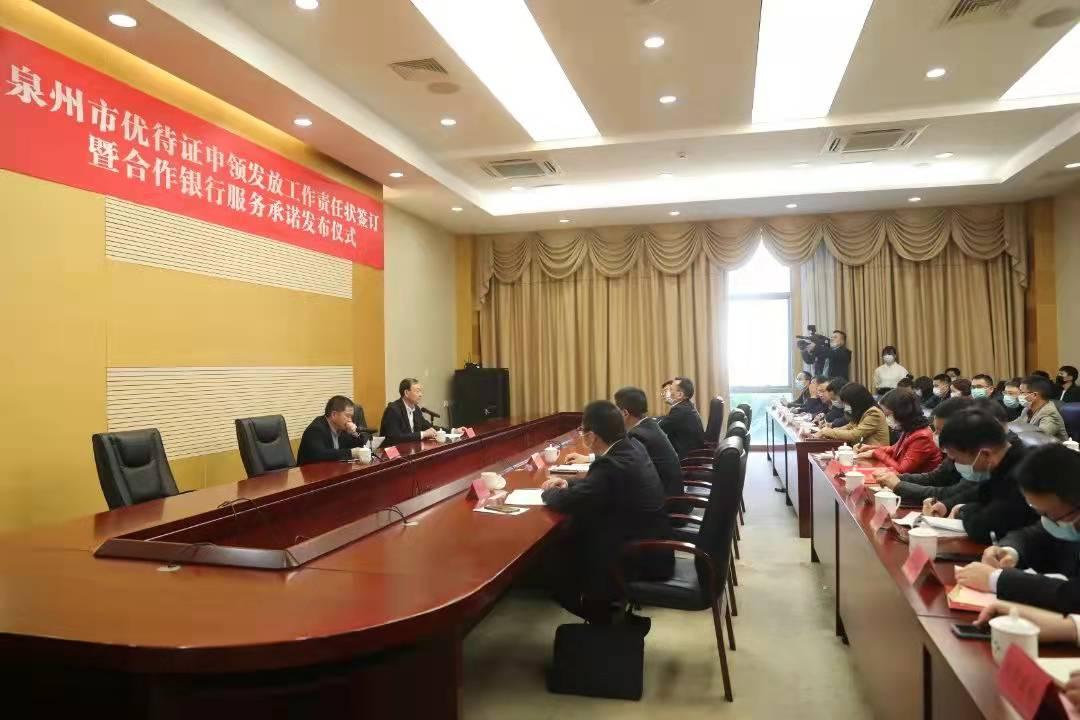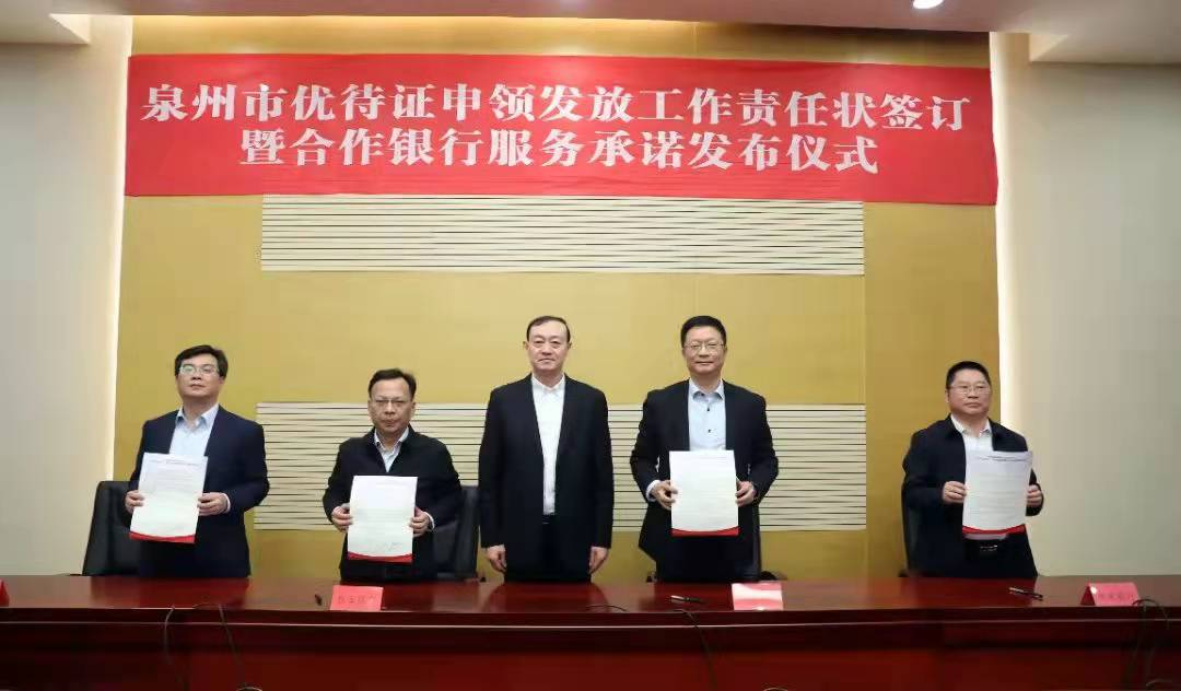 我省于3月1日全面启动退役军人、其他优抚对象优待证申领发放工作。泉州市当天下午立即召开优待证申领发放工作责任状签订暨合作银行服务承诺发布仪式,签订13份责任状和4份承诺书。连日来,泉州市各级退役军人事务部门高度重视、周密部署、创新工作方法方式,有力有序有效推进优待证申领工作。