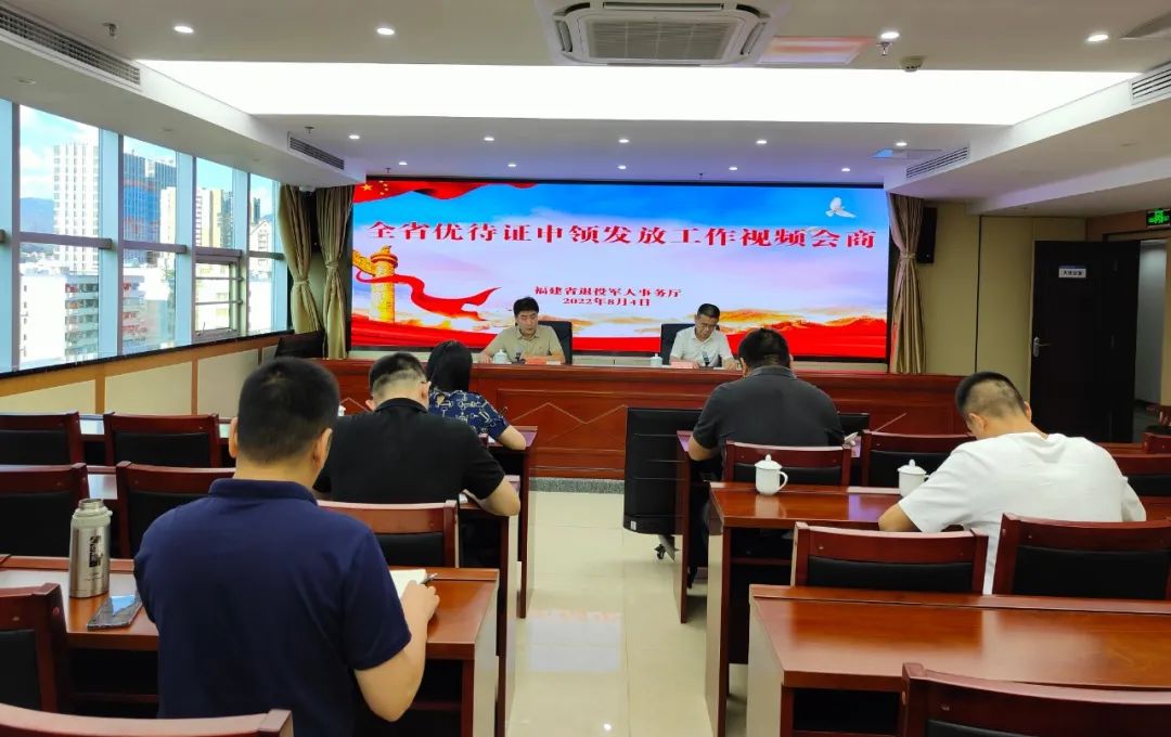 8月4日下午,省退役军人厅举行第三季度全省优待证申领发放工作视频会商,通报情况、分析形势、研究对策,动员全系统以更大力度、更精准措施做好优待证申领发放工作。厅党组成员、副厅长陈建辉参加会议并提出五点要求: