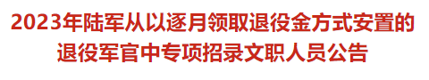 为吸纳优秀退役人才继续服务国防和军队建设,根据《中国人民解放军文职人员条例》《从退役军人专项招录军队文职人员暂行规定》等政策规定,现就2023年陆军从以逐月领取退役金方式安置的退役军官中专项招录文职人员有关事项公告如下。