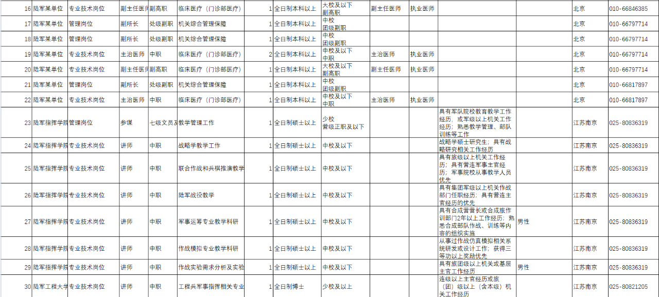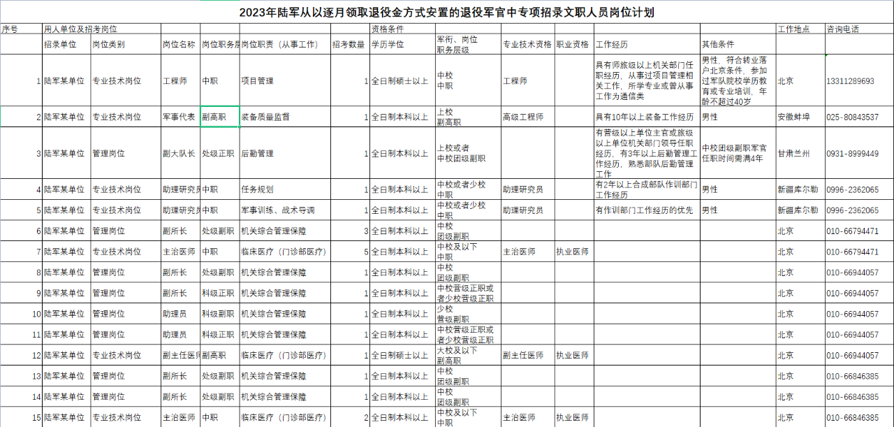 附件:2023年陆军从以逐月领取退役金方式安置的退役军官中专项招录文职人员岗位计划