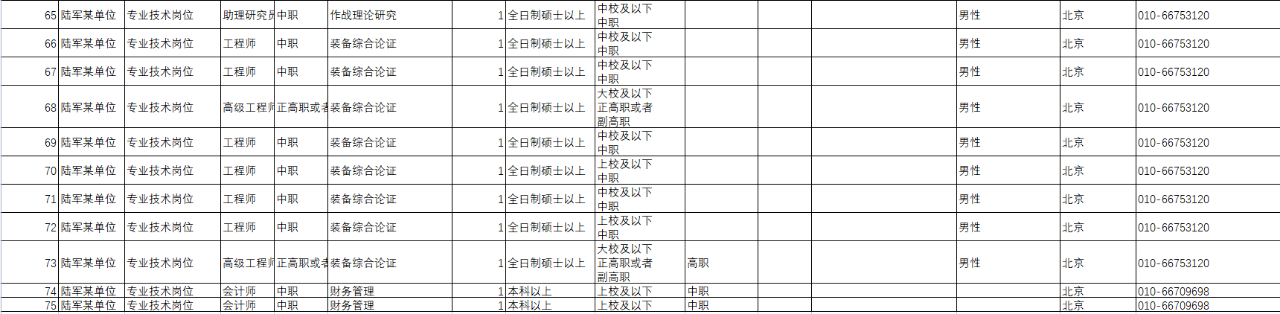 (三)身体条件。符合军队招录聘用文职人员体格检查的标准条件。