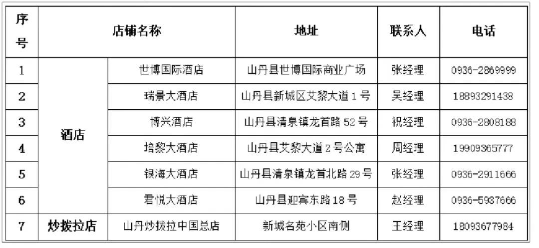 全国“一等功臣”“一级英模”“二级英模”在山丹免费住宿免费品尝“炒拨拉”店铺名单