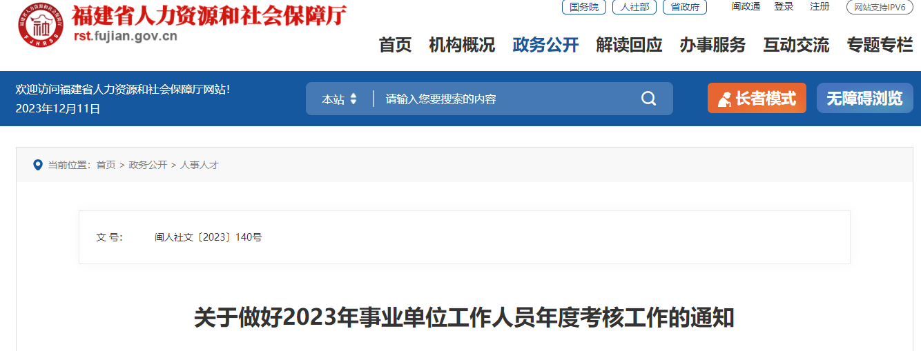 根据《事业单位人事管理条例》《事业单位工作人员考核规定》(人社部发〔2023〕6号,以下简称《考核规定》)等有关规定,结合历年我省事业单位工作人员年度考核工作实际,现就做好2023年度事业单位工作人员年度考核工作有关事项通知如下:
