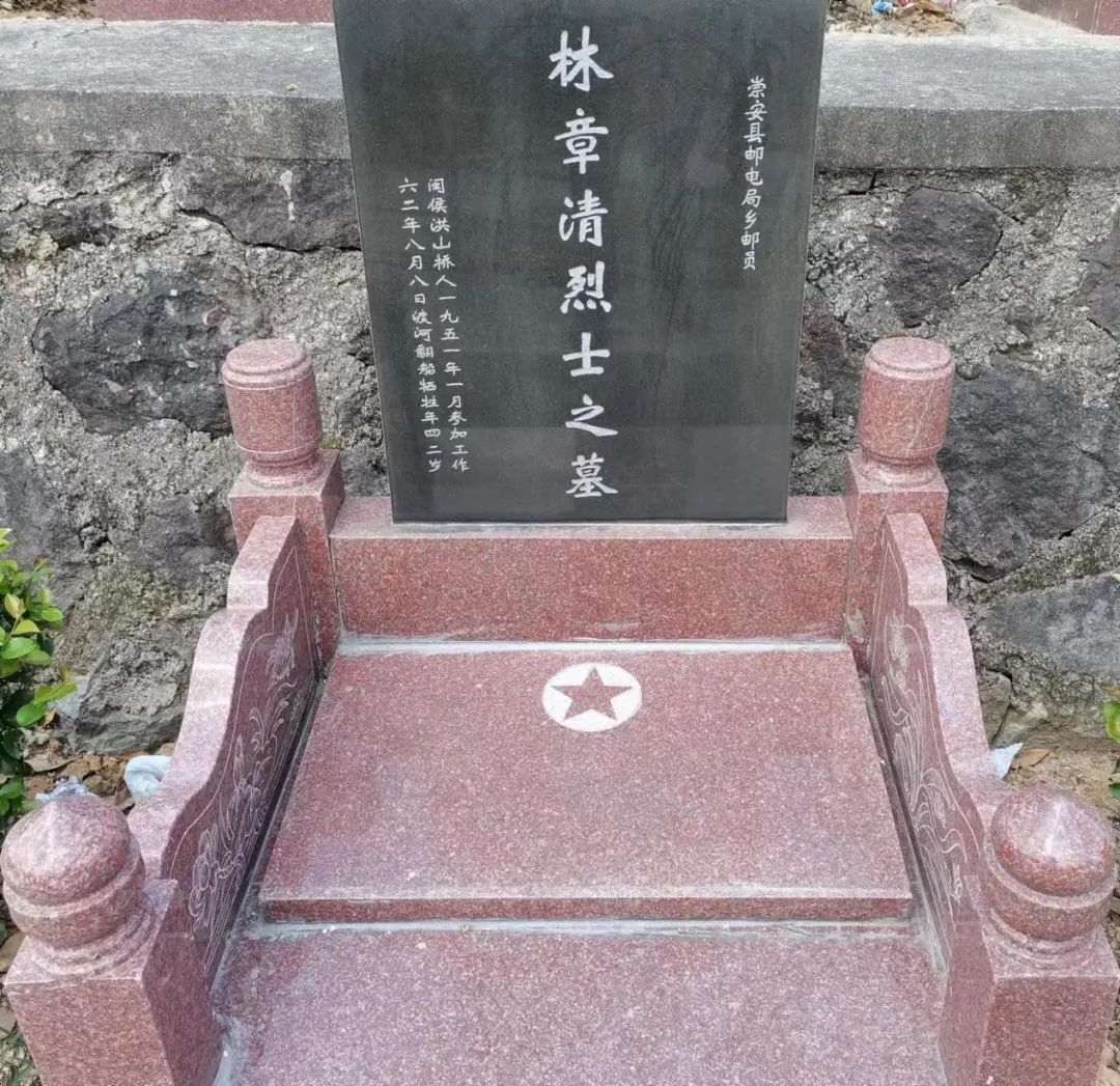 福建省闽侯洪山桥人,1951年1月参加工作,崇安县邮电局乡邮员,1962年8月8日渡河翻船牺牲,享年42岁,安葬位置:由武夷山玉女峰脚下集中迁葬至福建省南平市武夷山市妙安陵园烈士集中安葬区(中华英烈网未查到相应信息)。