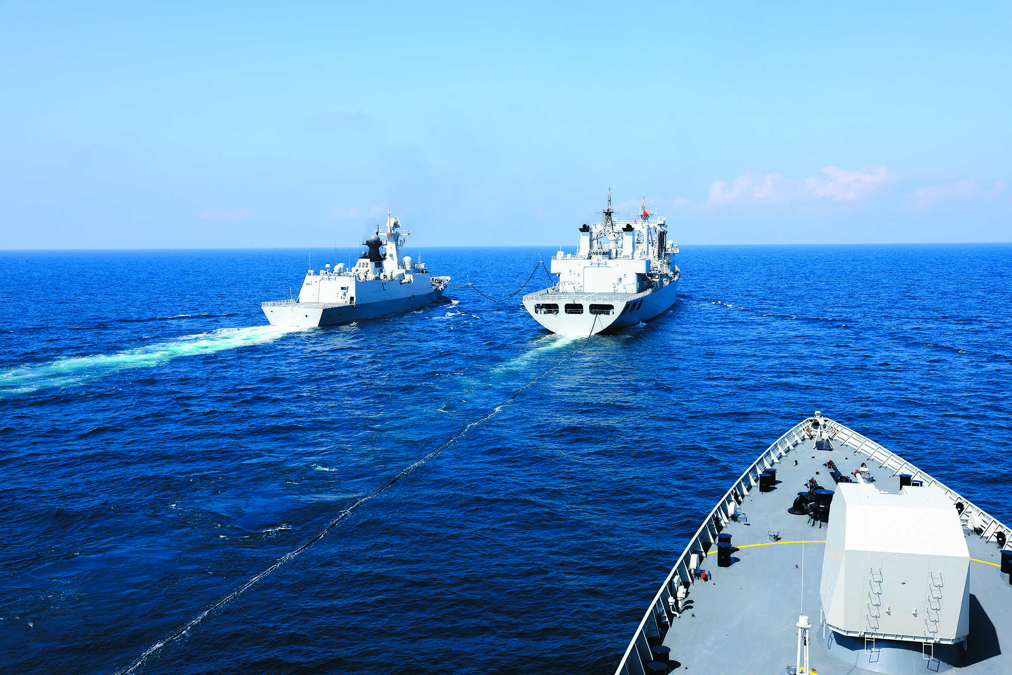 2月22日,第47批护航编队在亚丁湾海域进行海上补给。任 科摄