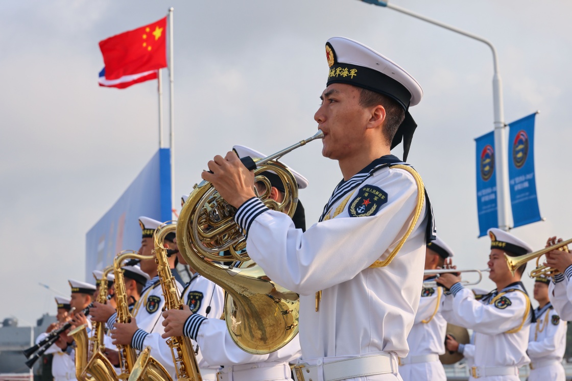 3月26日,中泰“蓝色突击-2025”海军联合训练开幕式在广东湛江举行,军乐队奏两国国歌。新华社发(乔晨曦 摄)