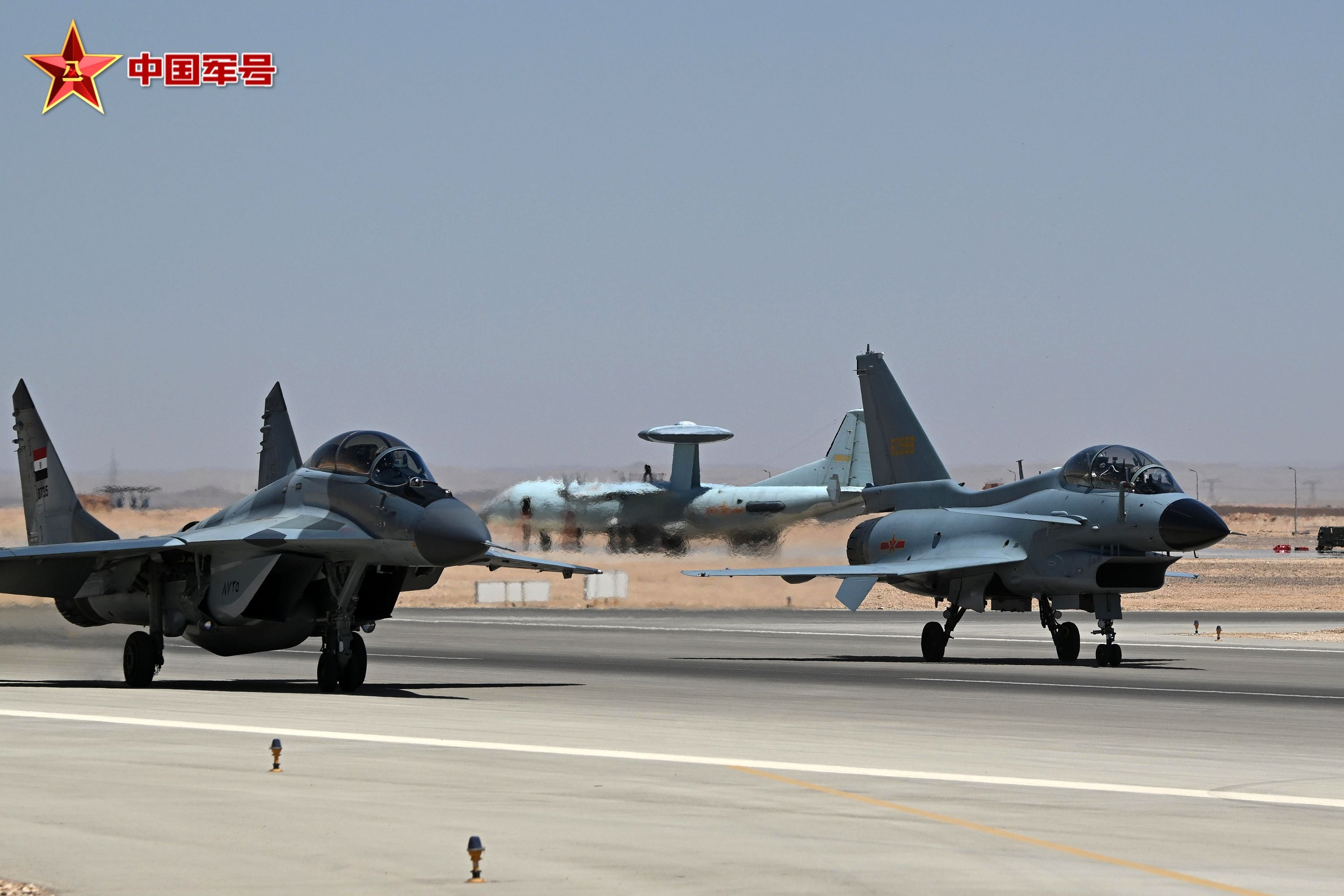 根据年度军事交流计划和中埃两国空军达成的共识,4月中旬至5月上旬,两国空军在埃及空军某基地组织代号为“文明之鹰-2025”的空军联合训练,双方派出歼击机、预警机、加油机和直升机等力量参训。