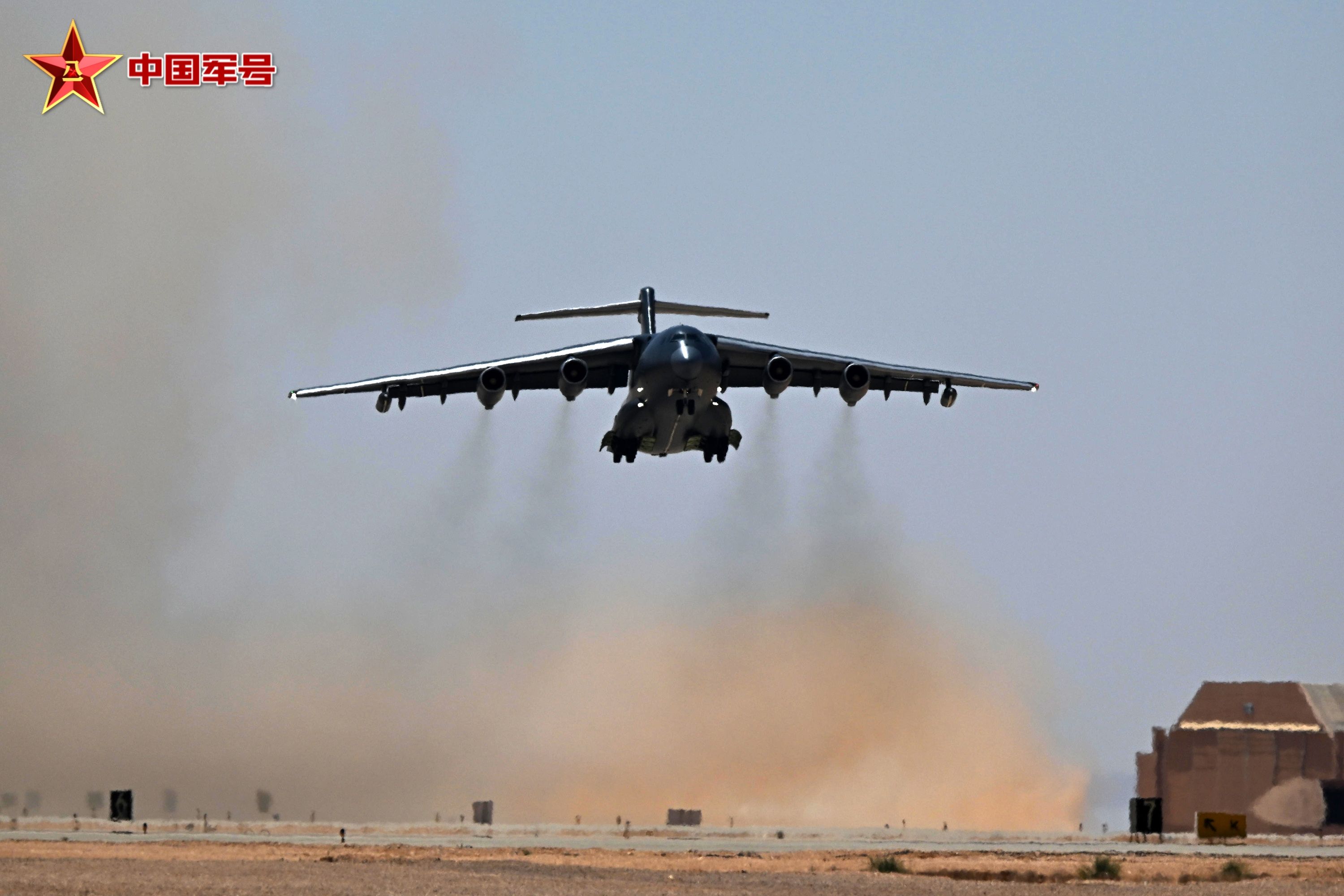 4月19日,埃及空军某基地,参加中埃“文明之鹰-2025”空军联合训练的中国空军运油-20飞机起飞。
