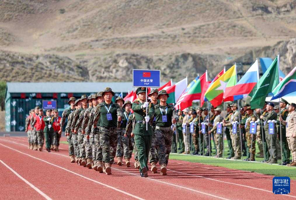 7月15日,“锋刃-2025”国际狙击手射击竞赛在位于新疆乌鲁木齐的武警部队某训练基地开幕,来自20多个国家的50余个狙击小组参赛。这是中国武警参赛队员步入现场。新华社发(侯崇慧 摄)