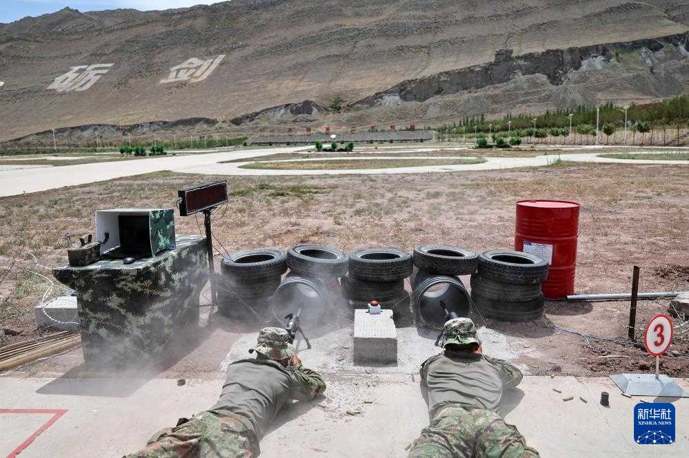 7月15日,“锋刃-2025”国际狙击手射击竞赛在位于新疆乌鲁木齐的武警部队某训练基地开幕,来自20多个国家的50余个狙击小组参赛。这是开幕式后,越南参赛队员进行多种姿势课目竞赛。新华社发(马士宝 摄)