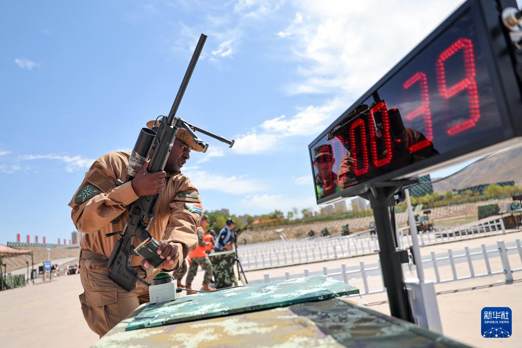 7月15日,“锋刃-2025”国际狙击手射击竞赛在位于新疆乌鲁木齐的武警部队某训练基地开幕,来自20多个国家的50余个狙击小组参赛。这是开幕式后,南非参赛队员进行“移形换位”课目竞赛。新华社发(侯崇慧 摄)