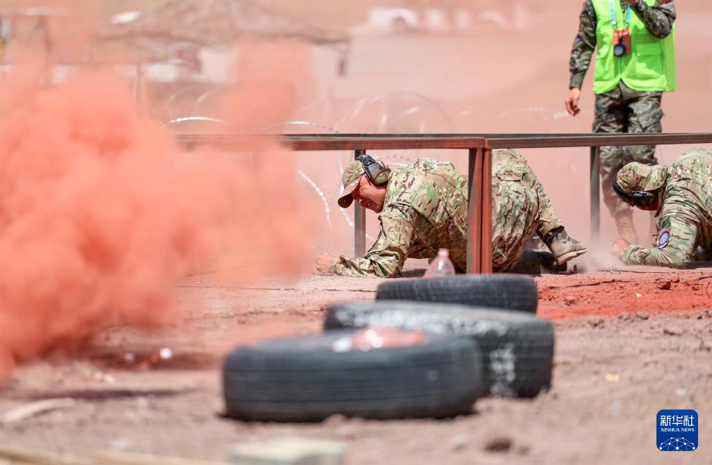 7月15日,“锋刃-2025”国际狙击手射击竞赛在位于新疆乌鲁木齐的武警部队某训练基地开幕,来自20多个国家的50余个狙击小组参赛。这是开幕式后,各国参赛队员进行“移形换位”课目竞赛。新华社发(侯崇慧 摄)