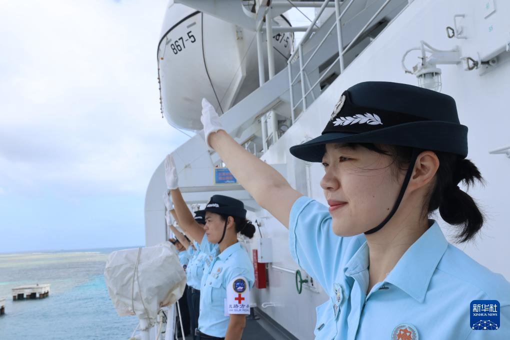 “丝路方舟”号医院船离开码头后与汤加海军举行了通信操演,随后双方舰艇鸣笛敬礼分航。