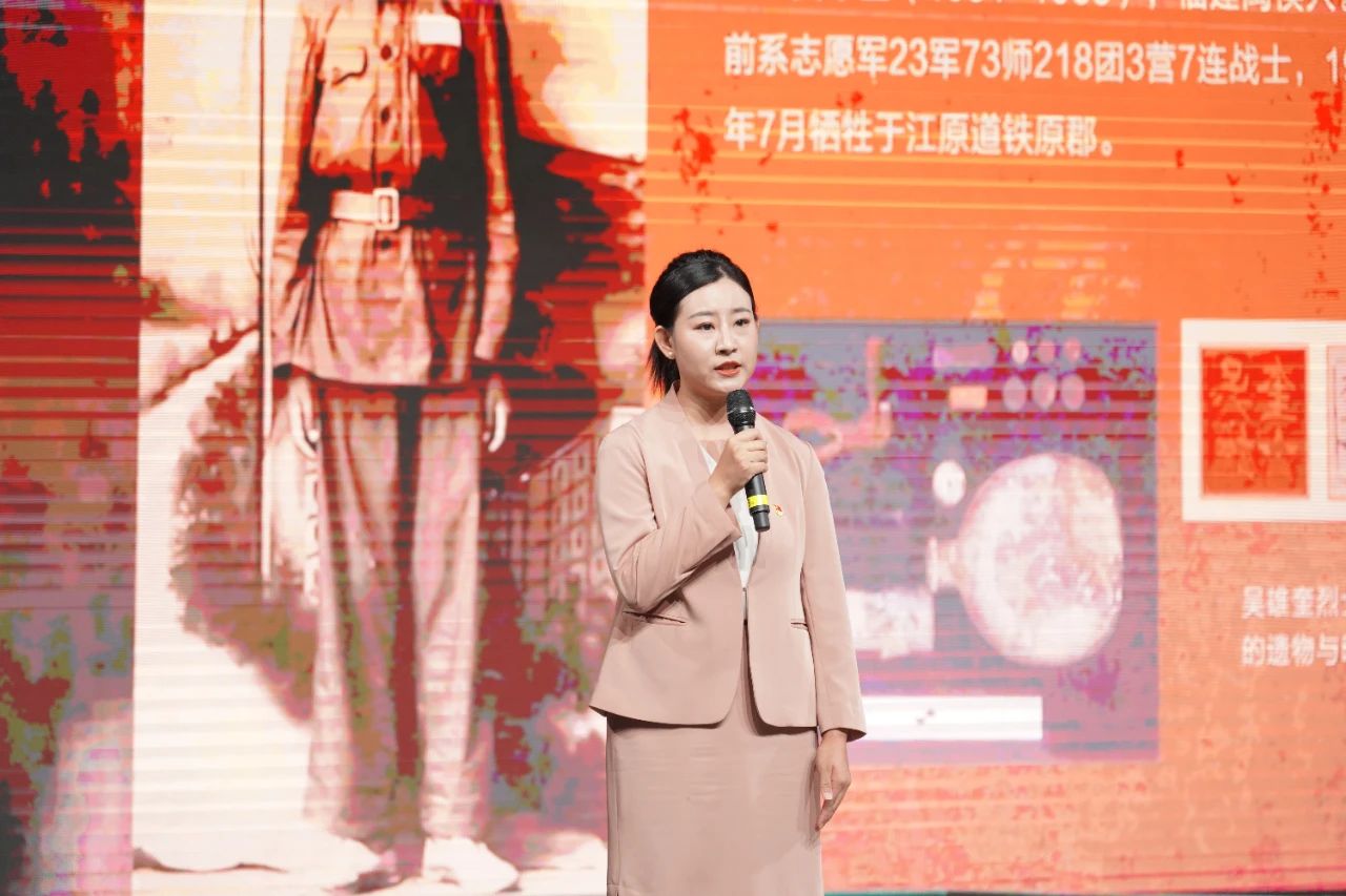 宣讲活动中,两位小朋友深情带来诗朗诵《那支钢笔》《有国才有家》,用稚嫩的童声讲述了抗美援朝随军记者用钢笔记录了志愿军保家卫国的感人故事,表达了少年儿童真挚的爱国情怀,感动了现场的所有观众。