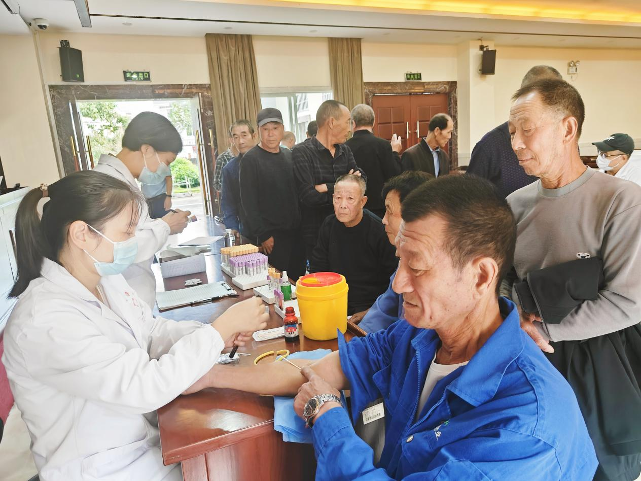 ↑19日,硖门畲族乡的优抚对象正在抽血化验点做检查