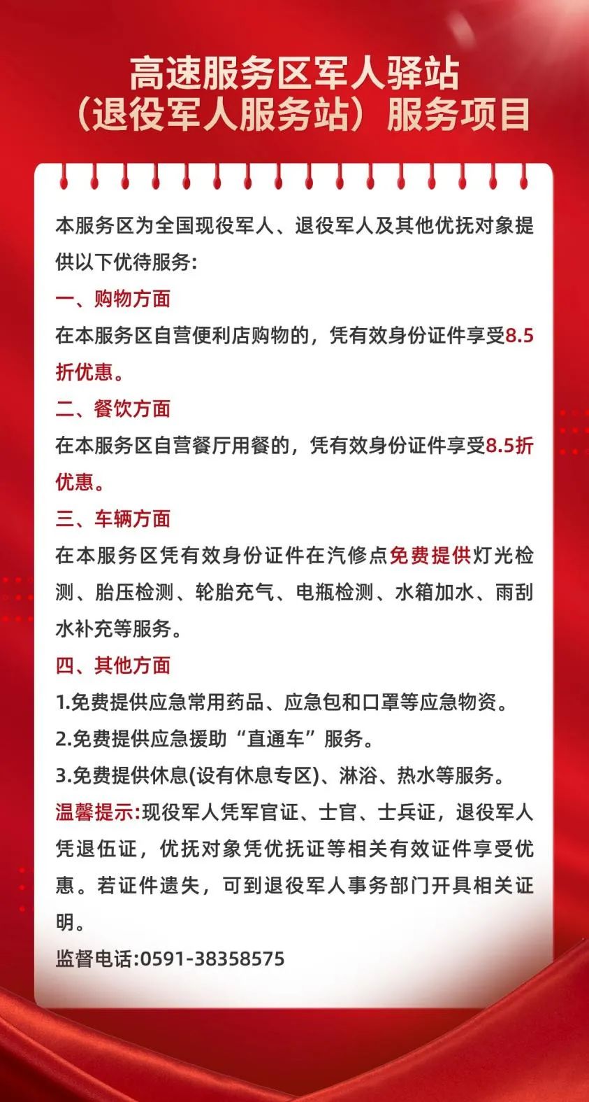 @老战友,福建已有56个高速服务区为您提供“专属优待”!