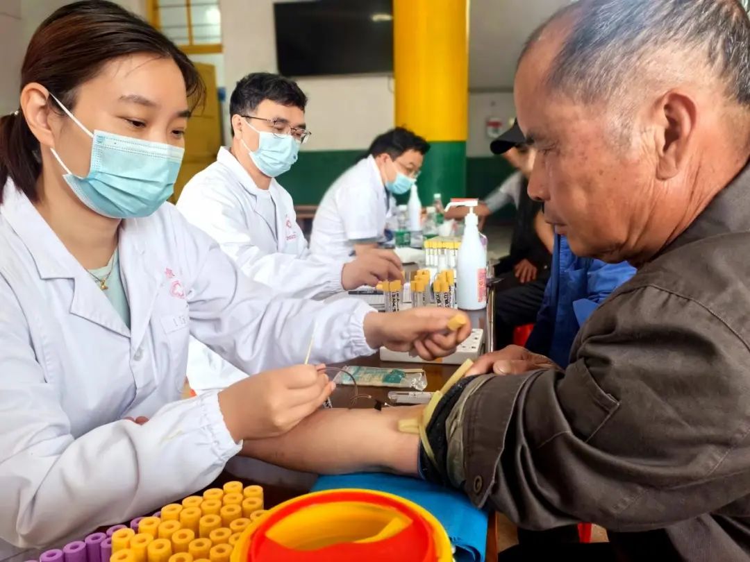 在洋中镇、中仙镇、新阳镇,每到一个乡镇的集中诊疗点,医疗队的队员们就立刻进入工作状态。专家坐诊送医送药、心电图检查、彩超、X光、生化全套、血常规、乙肝两对半、HP(幽门螺杆菌尿素酶抗体定性检测)、肿瘤标志物筛查、发放健康宣传手册等十几个多而实的诊疗项目,为老兵们提供健康检测。
