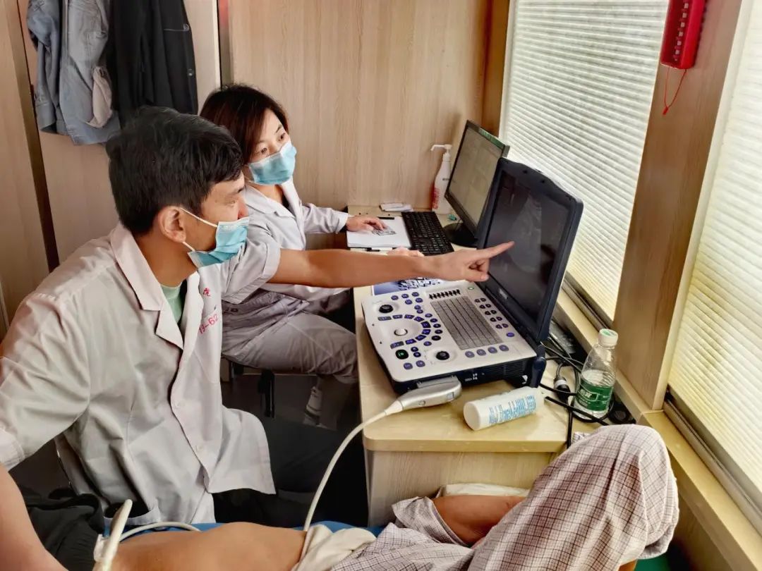 新阳镇优抚对象在医疗巡诊车上做彩超检查