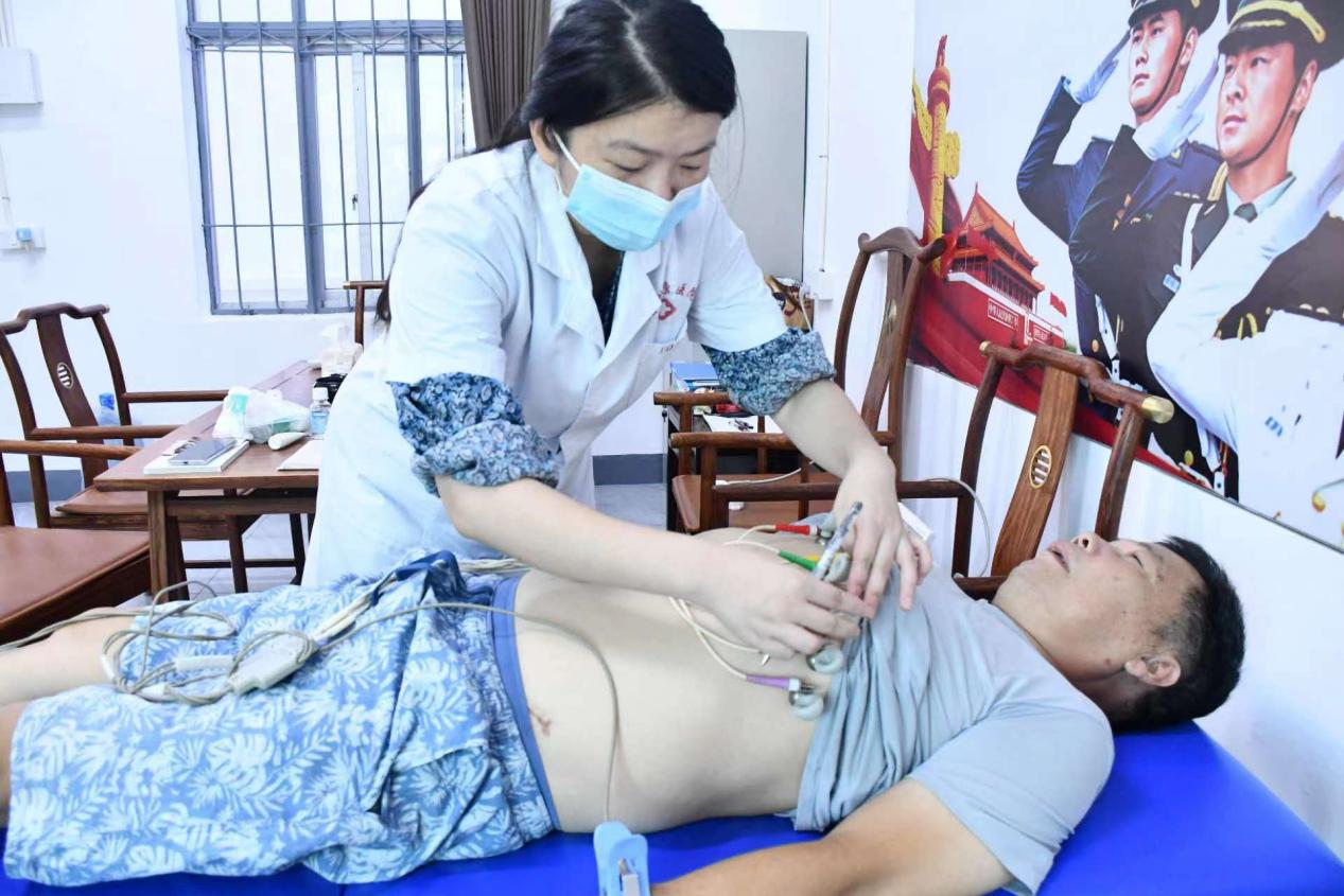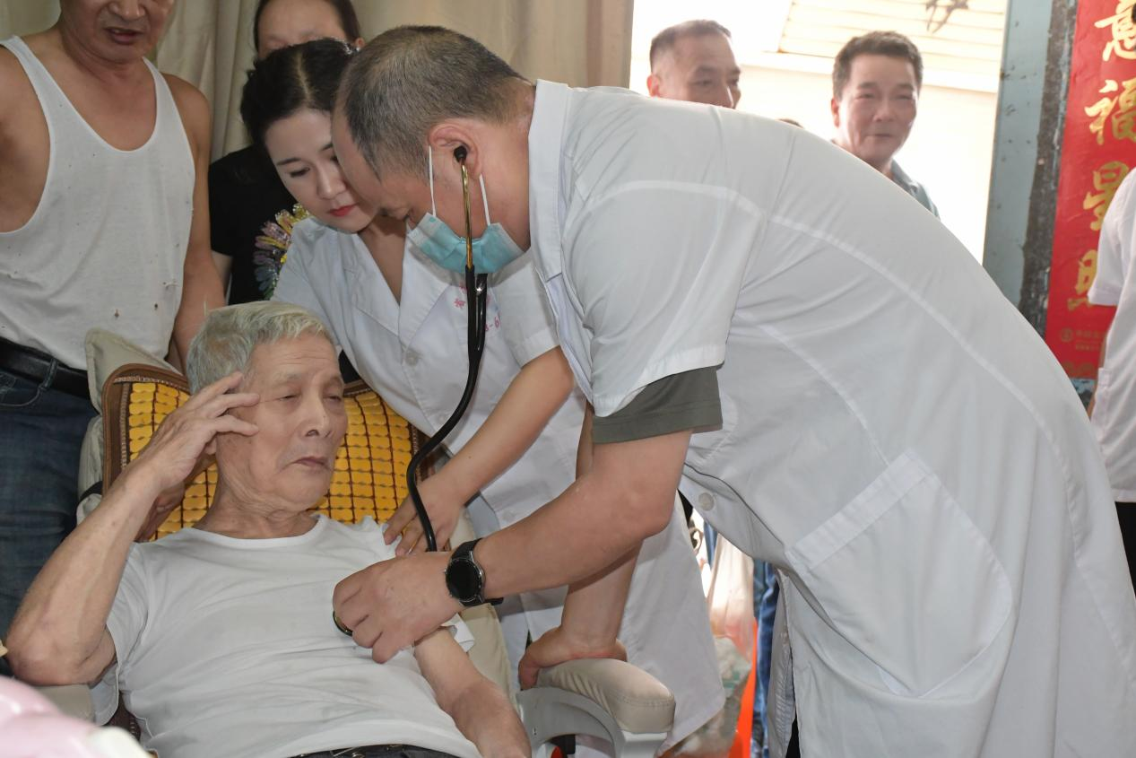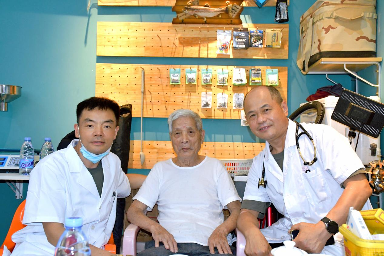 22日,第900医院罗助荣主任医师(右一)为梁启德听诊
