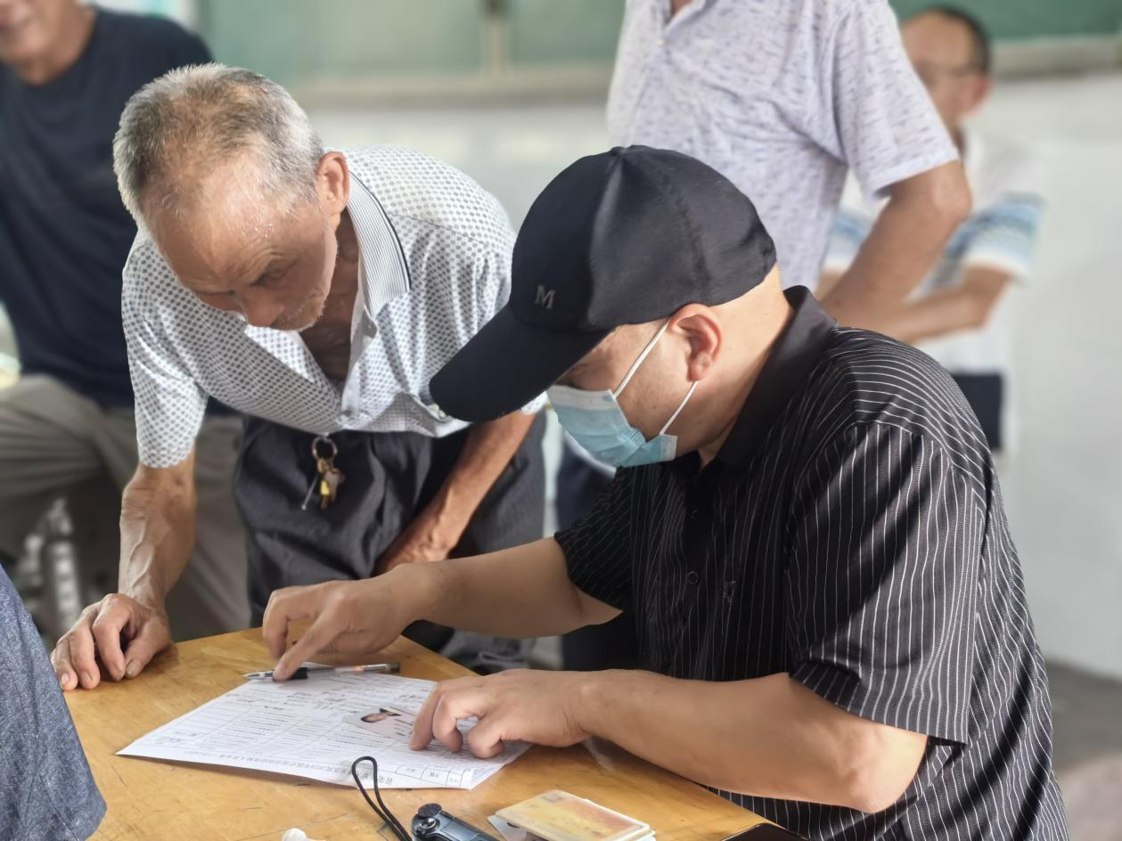 24日,优抚对象在东夏镇荷步小学集中诊疗点进行信息登记