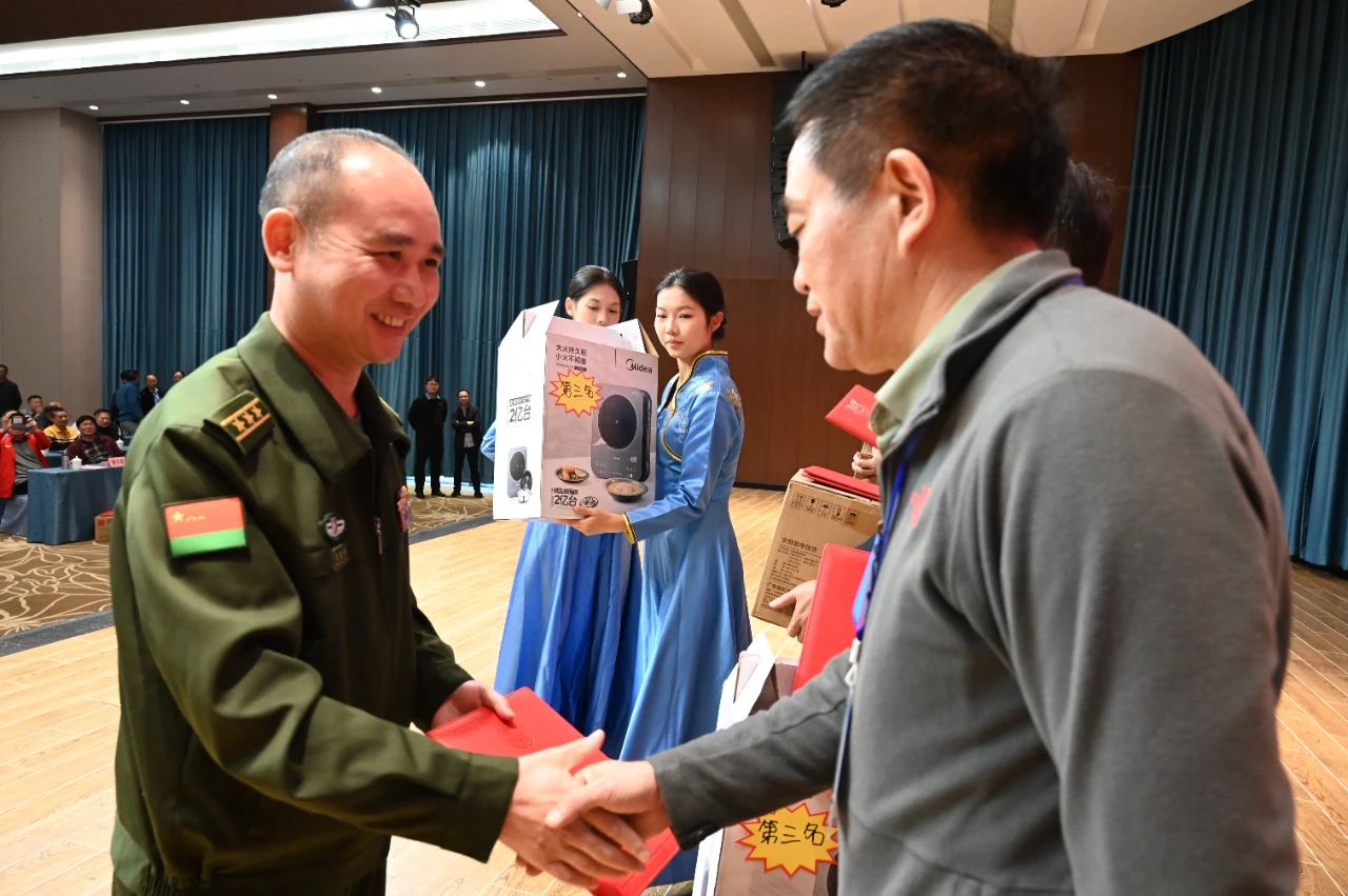 演出的过程中,省、市退役军人事务系统相关领导上台为荣获此次趣味运动会冠、亚、季军颁发获奖证书和奖品。大家纷纷合影留念,记录这一美好时刻。