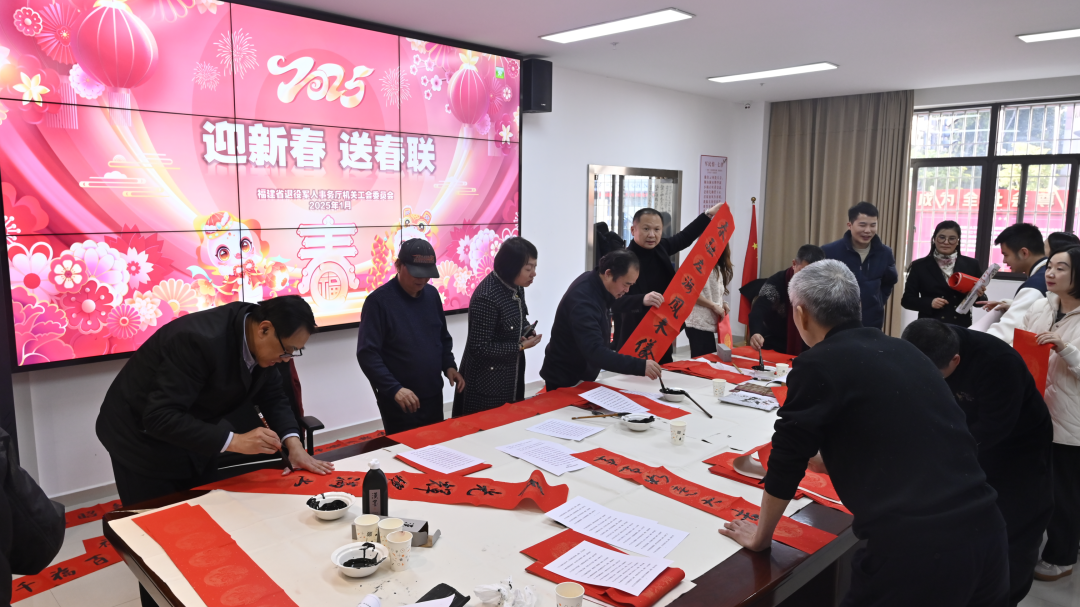 为传承和弘扬中华优秀传统文化,丰富厅机关文化生活,营造浓厚、欢快、喜庆的节日气氛,1月17日下午,在省退役军人事务厅党组指导下,厅机关工会组织开展2025年“迎新春送春联”活动。省退役军人事务厅党组党员、副厅长陈建辉、蔡静南,厅二级巡视员陈勇,省爱国拥军促进会党支部书记黄序和,省爱国拥军促进会会长辛志华参加活动。