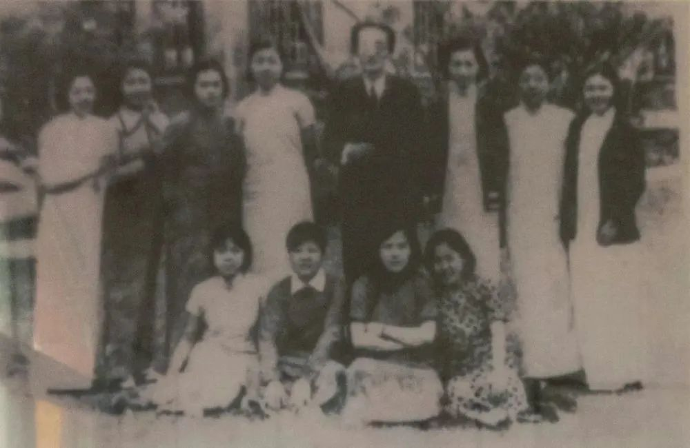 李林在上海爱国女中与部分师生合影(前排左二为李林)