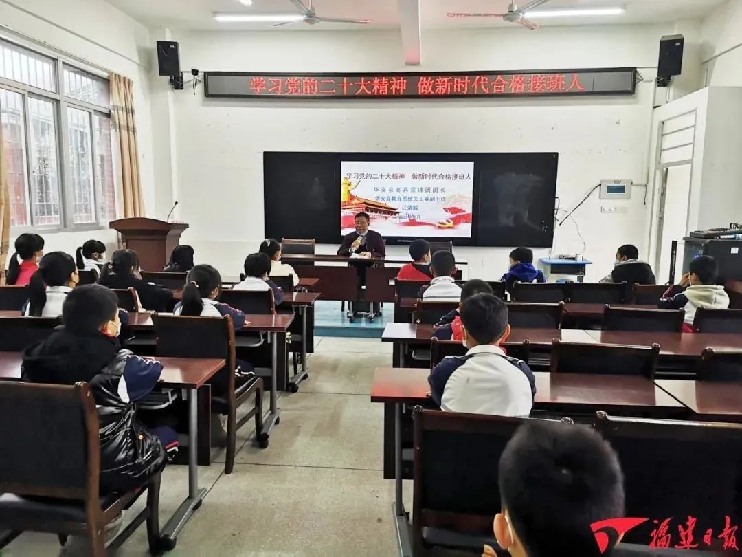 近日,漳州市华安县老兵宣讲团来到湖林中心小学开展“学习党的二十大精神,做新时代合格接班人”主题宣讲活动。截至目前,宣讲团已先后开展宣讲红色故事10余场次,累计受教育干部群众、学校师生3000余人。