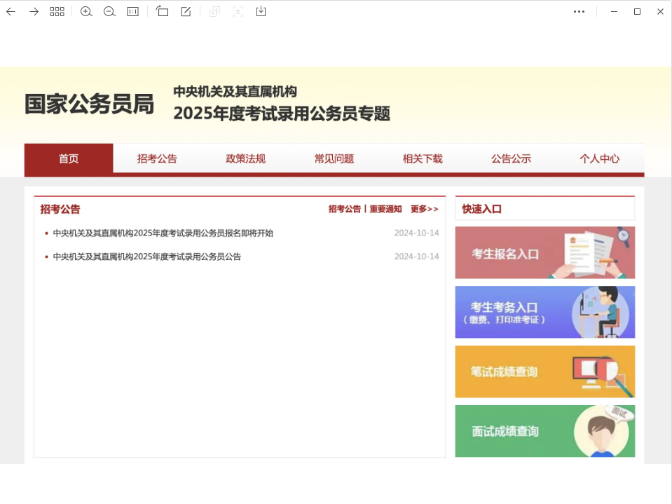 考生可于10月15日8:00至10月24日18:00期间登录“中央机关及其直属机构2025年度考试录用公务员专题网站”进行网上报名,公共科目笔试将于12月1日在全国各直辖市、省会城市、自治区首府和部分城市同时举行。