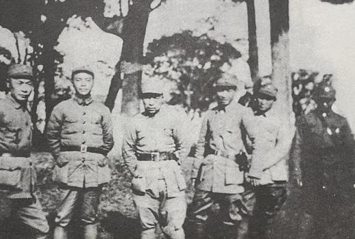 新四军第三支队第六团东进江南苏(州)、常(熟)、太(仓)地区时,陈毅(左一)叶飞(左四)等人的合影