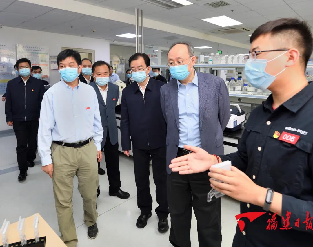 仲春时节,厦大翔安校区春光明媚、草木葱茏,一派生机盎然,一幢幢红瓦飞檐的闽南特色建筑错落有致。尹力一行走进校园,首先来到生命科学学院,详细了解生物医学仪器共享平台运营情况。尹力强调——生命科学与生物医药产业是全球新一轮科技革命和产业革命的制高点,是我省战略性新兴产业的主攻方向。要充分发挥共享平台的优势,深化生命科学和生物技术学科建设和基础研究,瞄准前沿技术,围绕创新链布局产业链,充分利用窗口机遇期,抓紧引进系统成套设备,推动更多成果转化落地,实现产学研深度融合,为新发展阶段全省发展注入新动能。