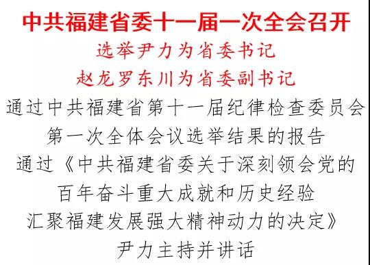 尹力当选为中国共产党福建省第十一届委员会书记,赵龙、罗东川当选为中国共产党福建省第十一届委员会副书记。