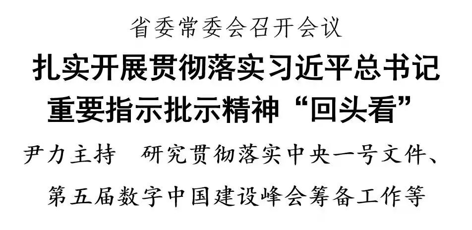 2月24日,省委书记尹力主持召开省委常委会会议,总结去年贯彻落实习近平总书记重要指示批示精神的工作情况,部署“回头看”工作;学习贯彻《中共中央国务院关于做好2022年全面推进乡村振兴重点工作的意见》,落实党委和政府领导班子及其成员粮食安全责任,研究全面推进乡村振兴,部署深化科技特派员制度、加强粮食安全工作;审议2022年省政协重点协商和调研计划;听取第五届数字中国建设峰会筹备情况,研究今年数字福建工作要点等。