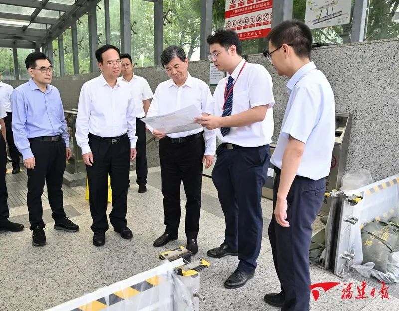 27日,周祖翼在福州地铁一号线树兜站检查防台风工作。
