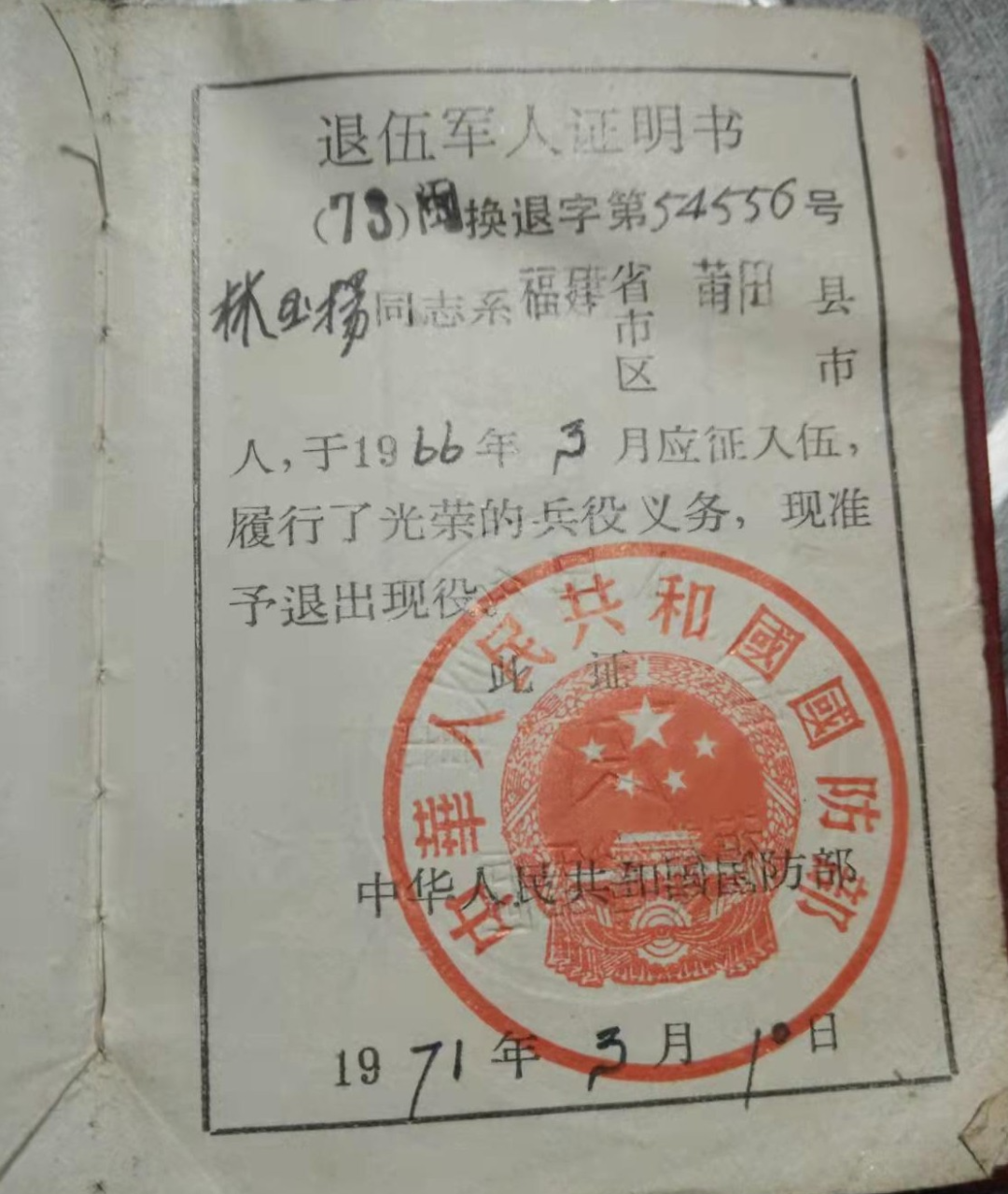 “我的外公林玉杨,于1966年3月自愿加入中国人民解放军,先后担任过战士、班长,也获得过“五好战士”称号和团嘉奖,一生履历非常精彩。”林文哲满脸骄傲地讲述着外公的事迹,在外公的影响下,他毅然决然地报名参军。