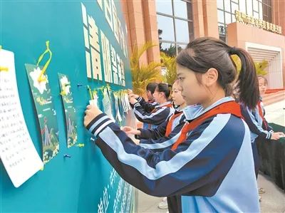 3月27日,福建省“百园千校清明祭英烈”活动启动仪式上,福州第二十二中学学生代表为烈士献上寄语卡牌。林城 摄
