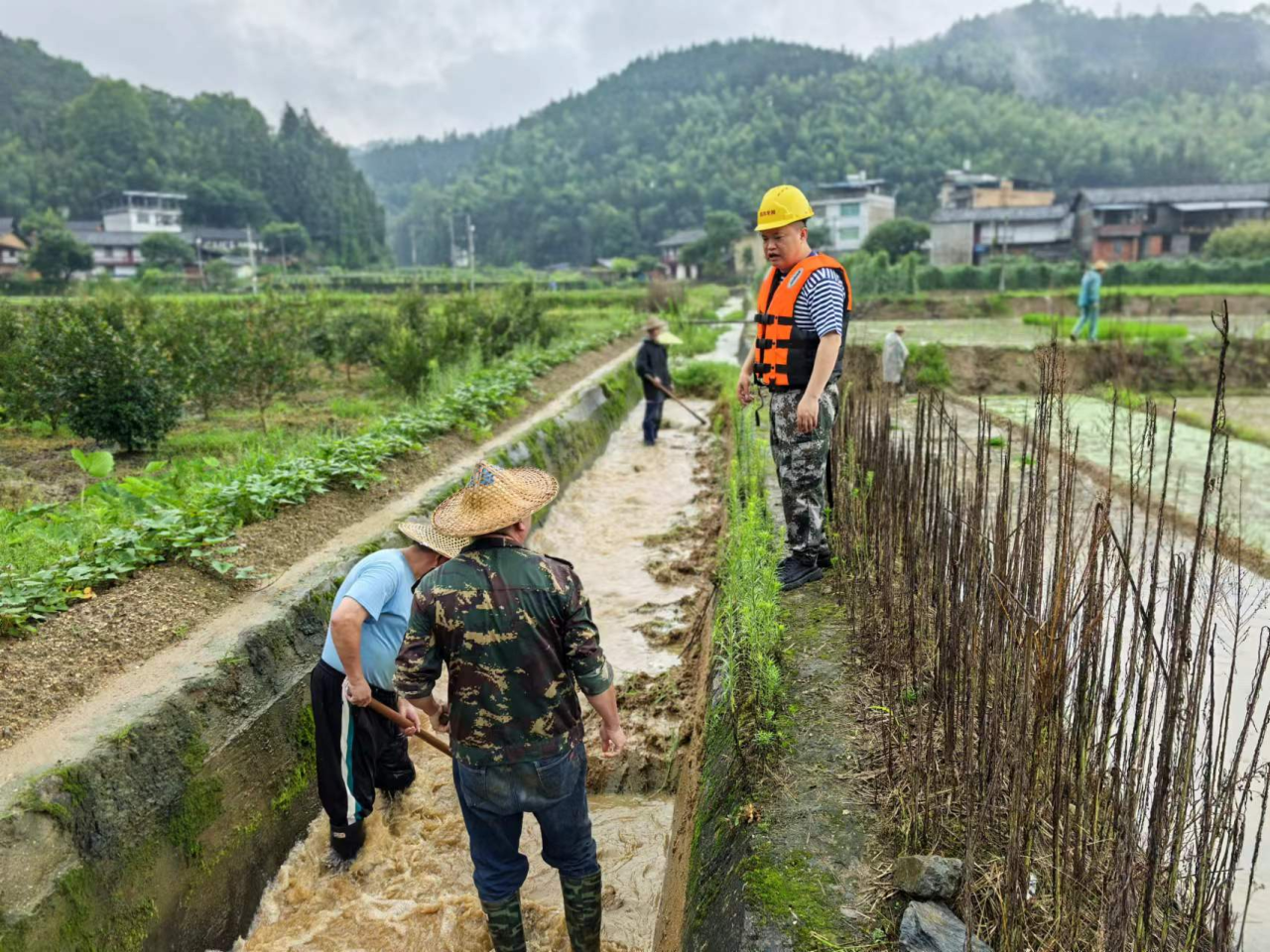 “我们再去河边看下,今天水位好像有点不对劲。”清理完塌方,陈斌没有休息,带着村支委到河边再次巡查。“村里的灌溉水渠被淤泥和树枝堵住了,水排不出去,必须马上抢通,不然周边百来亩稻田和菜地都会被淹没。”发现问题的陈斌又开始了水渠清淤工作。经过他和村干部两个多小时的清理,2.3米宽的水渠终于能正常排水。