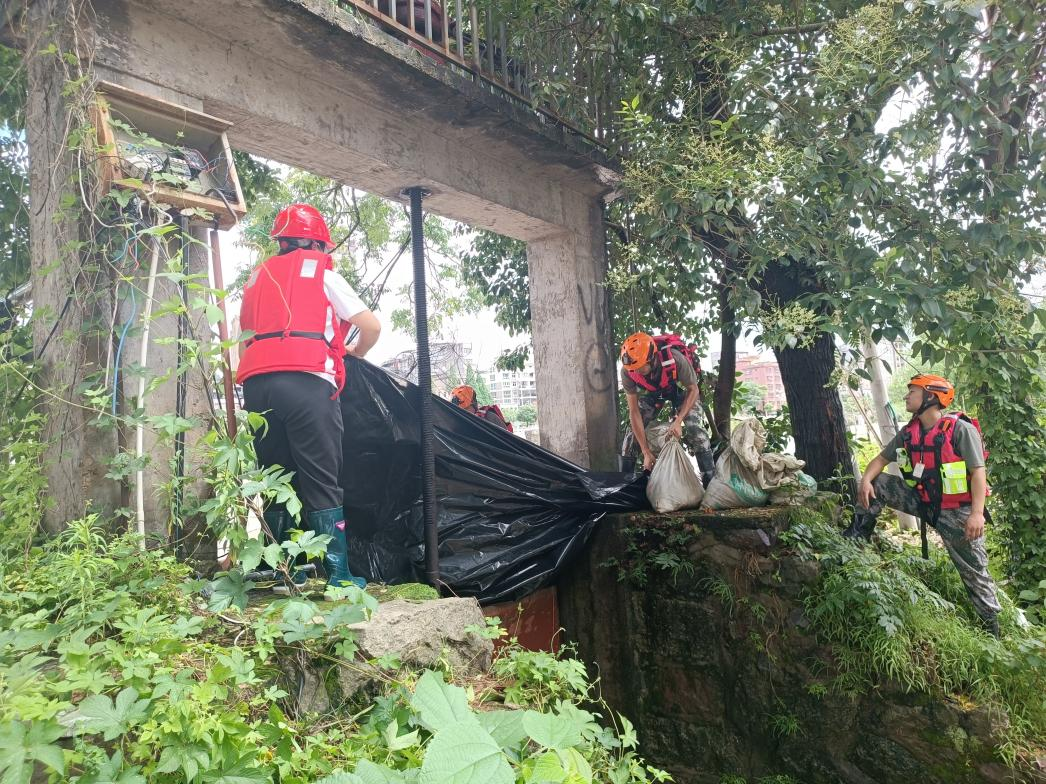 河东乡退役军人志愿者在低洼危险地带进行围堰处理