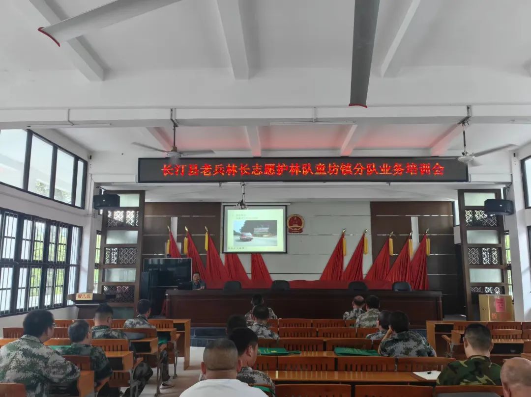 为了更好地履行护林职责,老兵护林志愿队首先进行了全面而系统的业务培训。培训内容涵盖了森林资源保护、松材线虫病防治、森林防火及安全生产、生态环境监测等各个方面,旨在全面提升队员们的专业素养和业务能力。培训中,林业站站长刘石长结合案例分析进行生动讲解,让队员们深入了解森林生态系统的复杂性和脆弱性,帮助队员们掌握科学有效的护林方法和技巧。此次培训不仅为队员们点亮了知识的灯塔,更为他们指明了前行的方向。
