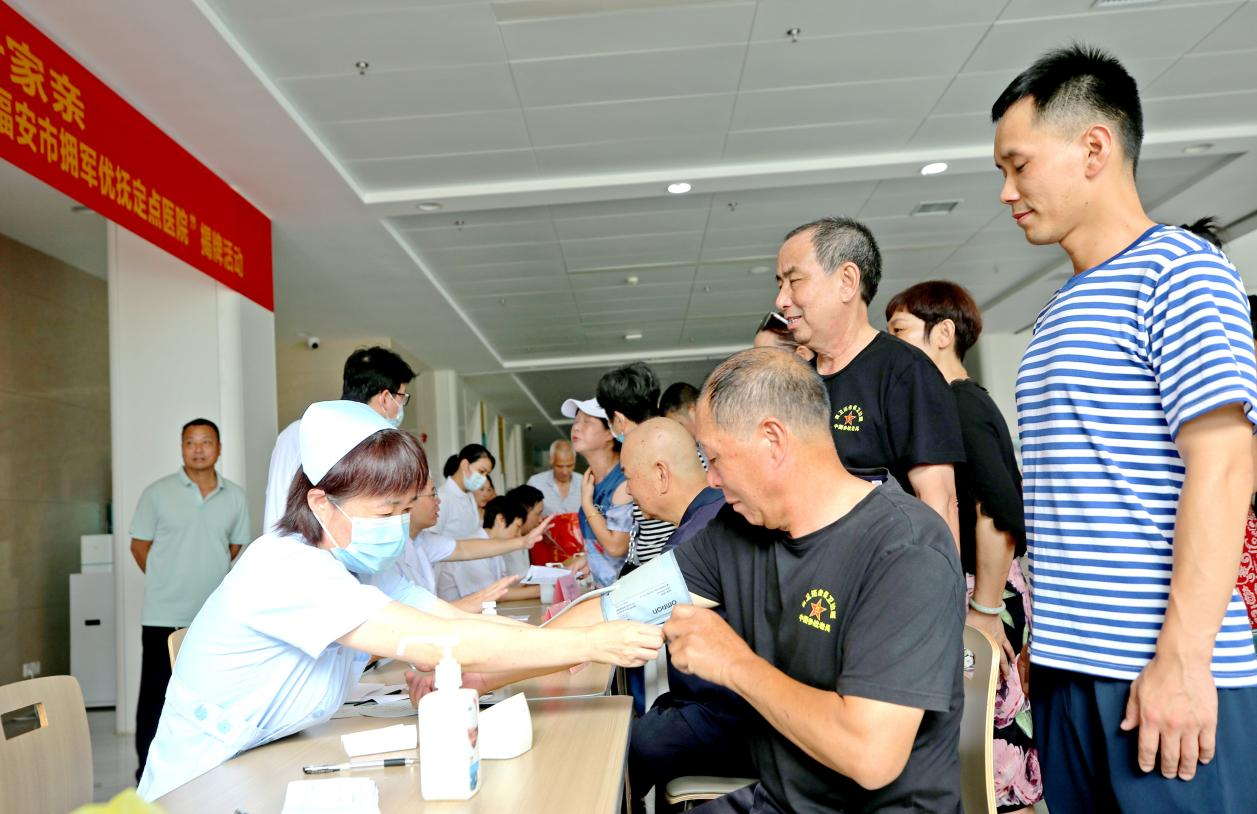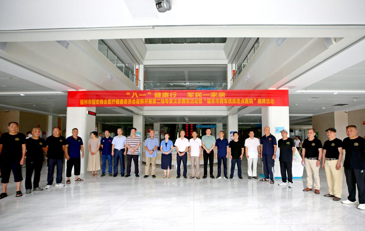 为进一步深化双拥共建,推动优抚优待政策落地见效,维护退役军人和其他优抚对象合法权益,在“八一”建军节来临之际,福安市双拥办、福安市退役军人事务局联合福州市福安商会医疗健康委员会于7月21日组织福州市福安籍医学专家返乡,在福安市人民医院开展第二场专家义诊拥军活动暨“福安市拥军优抚定点医院”揭牌活动。