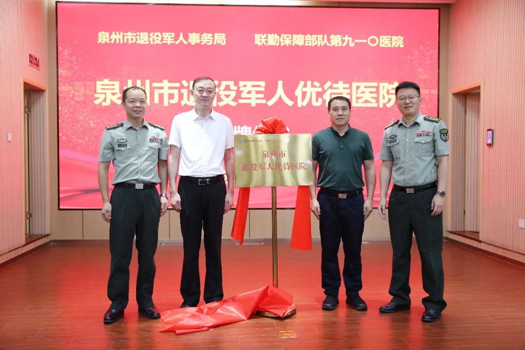 8月22日,泉州市退役军人事务局联合联勤保障部队第九一〇医院举行退役军人优待医院揭牌暨拥军优抚签约仪式,标志着泉州市退役军人优待医院在联勤保障部队第九一〇医院揭牌成立。