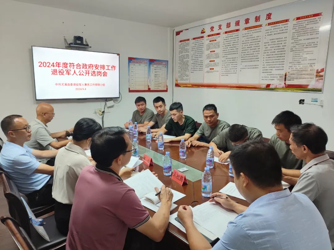 9月4日,三明市尤溪县退役军人事务局组织召开2024年度符合政府安排工作退役军人公开选岗会,6名退役军人按个人功绩量化评分的分数从高到低依次选岗。尤溪县编办、财政局、人社局等单位参加了本次会议;选岗全程由尤溪县融媒体记录。