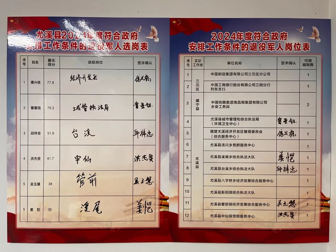 尤溪县:12个岗位供6名退役士兵选择
