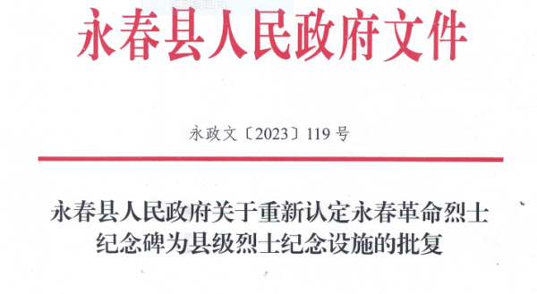 充分发挥退役军人事务领导小组的作用,强化部门联动与业务协同,加强与检察院、自然资源、档案馆、桃城镇政府等部门沟通联系,密切配合,形成合力,明确永春革命烈士纪念碑的用地范围、宗地界址、房屋实际情况等,形成翔实的确权资料,划定永春革命烈士纪念碑的保护范围,明确管理职能单位。