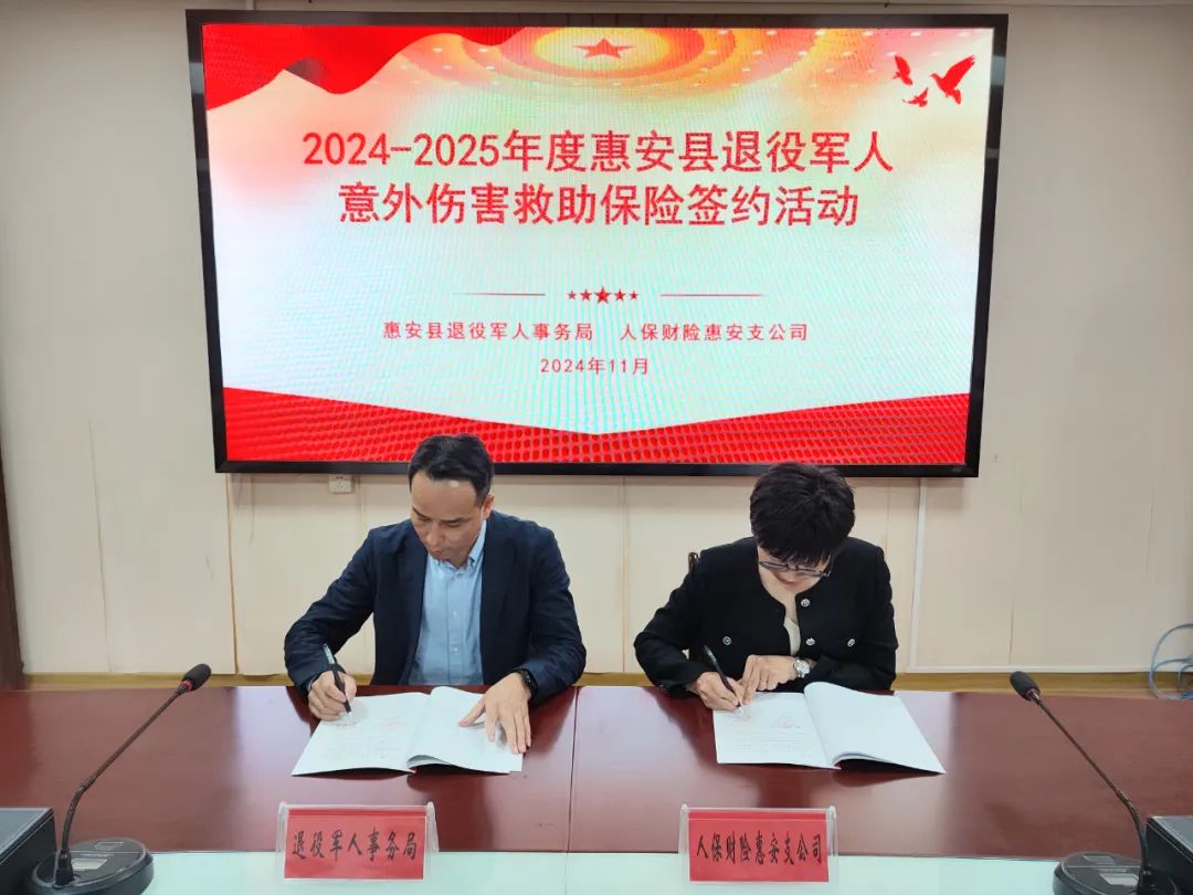 为有效降低退役军人因遭受意外伤害导致家庭经济困难的风险,近日,惠安县退役军人事务局与人保财险惠安支公司续签退役军人意外伤害救助保险协议,并将现役军人纳入保障范围,为惠安全县现役军人、退役军人提供意外伤害保险和困难救助全覆盖保障。此项温暖人心的举措已经连续推行四年,且已纳入惠安县为民办实事项目,成为惠安县保障退役军人权益的特色项目。