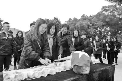 全体人员手捧素菊,依次上前向烈士骨灰敬献鲜花。陈晓静 摄