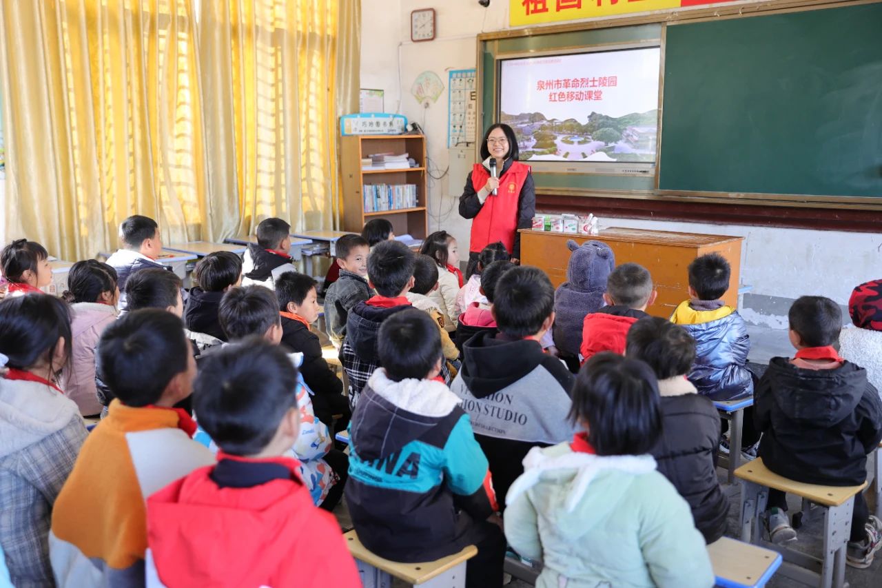 值得一提的是,泉州市革命烈士陵园宣讲团队还携手公益组织,前往位于革命老区安溪县北部海拔810米高山上的福斗小学,结合扶贫慰问“暖冬行动”,将红色移动课堂搬进大山,为山区留守儿童送去了“精神食粮”和“物质食粮”,以红色文化赋能助力乡村振兴。