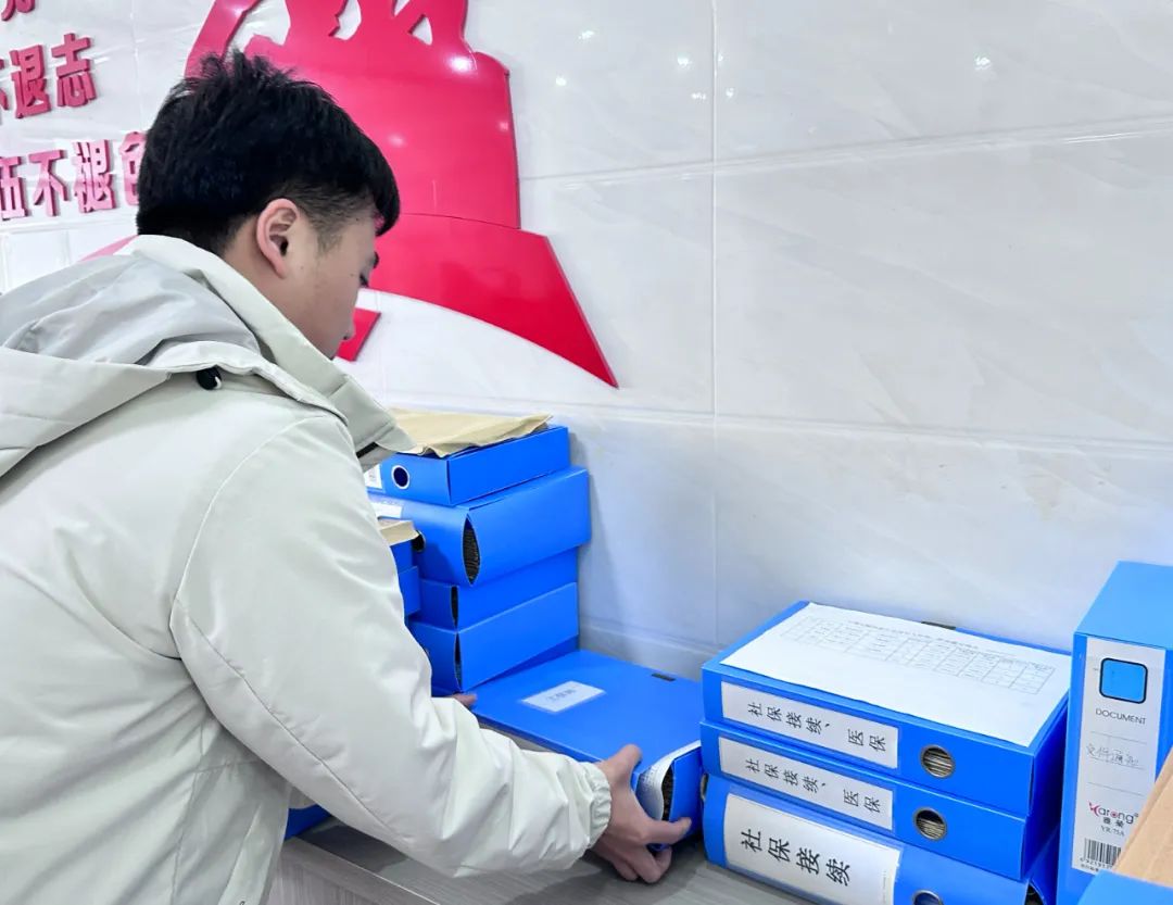 与此同时,工作人员也在紧张有序地整理归纳2024年度退役军人社保接续的档案材料。社保接续关乎退役军人的切身利益,工作人员认真核对每份档案中的关键信息,如服役年限、社保缴纳记录等,将零散的材料进行分类、装订成册,并按照规定流程进行归档保存。