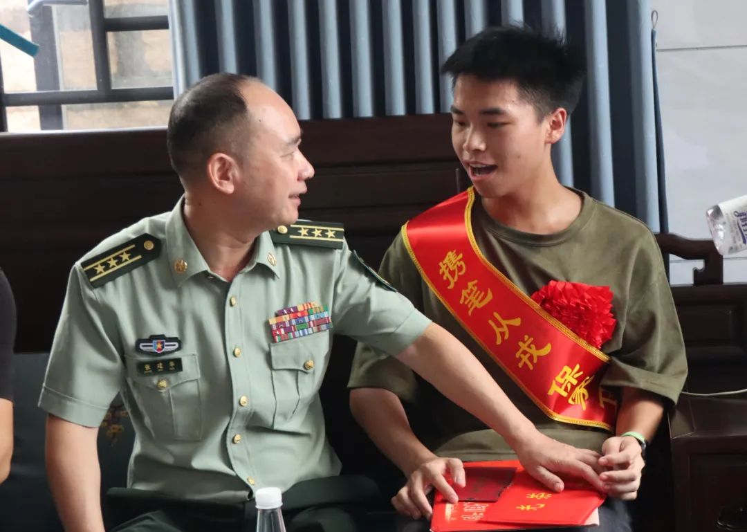 在深土镇学员陈嘉彬家中,当张建华将录取通知书郑重交到他手中,并称赞“‘入学即入伍’,这是全县的光荣!”时,陈嘉彬家人激动不已:“没想到党和政府举行这么隆重的仪式,让我们全家都感到无比光荣!”这份喜悦与荣光同样在六鳌镇徐锦坪家中激荡。徐锦坪被陆军工程大学录取,其年迈的爷爷紧握喜报,脸上洋溢着幸福的笑容,声音哽咽:“太高兴了!孙子能考上军校,是我们家的光荣!”