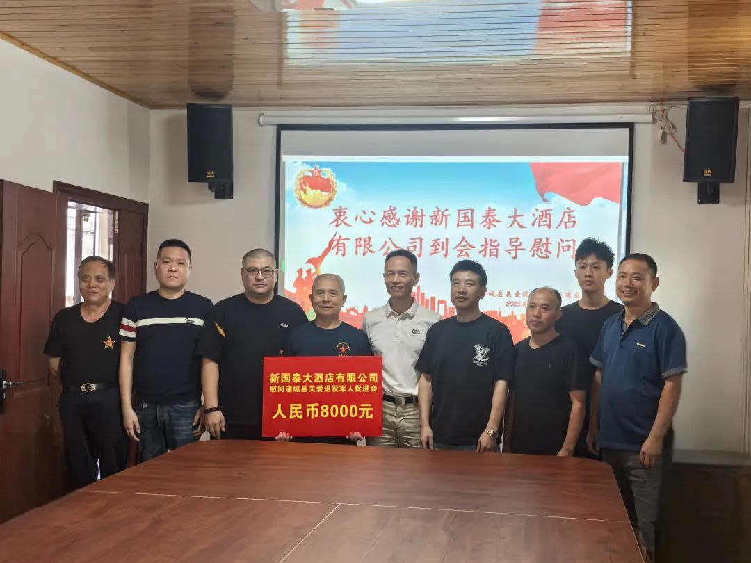 爱心捐赠注入拥军新活力。新国泰大酒店有限公司也以实际行动支持浦城拥军事业,向浦城县关爱退役军人促进会捐赠人民币8000元。该笔善款将专项用于浦城县关爱退役军人及拥军优属相关工作,为当地社会化拥军工作的深入开展注入新的资金活力。
